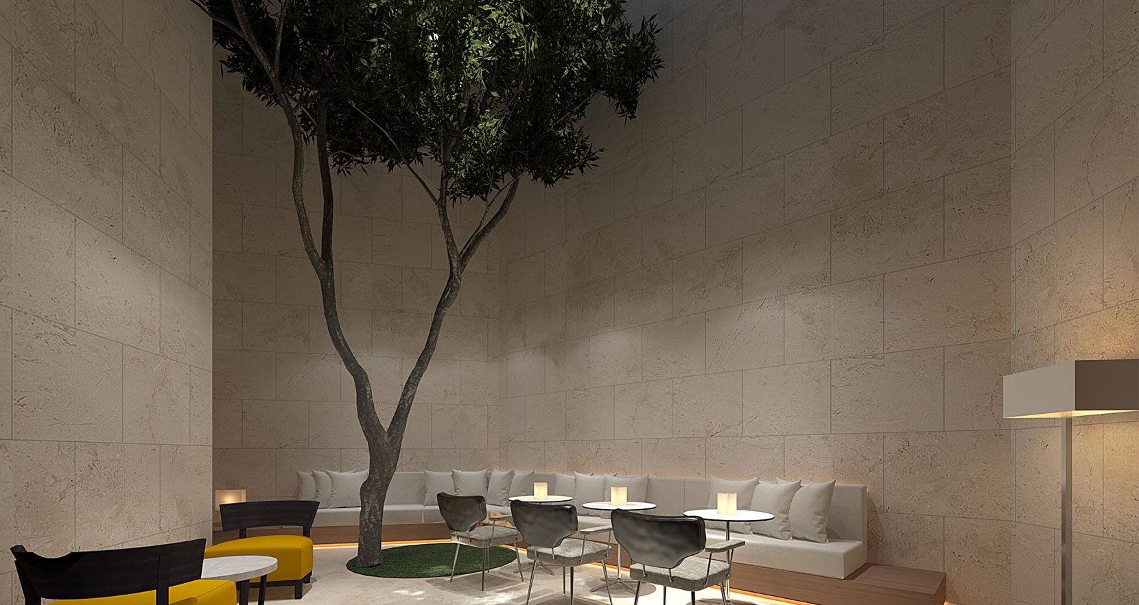 室内与室外环境的自然连接与融合,落地玻璃、半适明布帘等的应用,敞开式空间设计,将景观与自然光最大程度引入室内,让空间感受变得温暖愉悦。内院的设计,依赖绿意来遮挡了围墙后的建筑,是整个空间保持较高的独立性,不会被除建筑以外的事所打扰。
