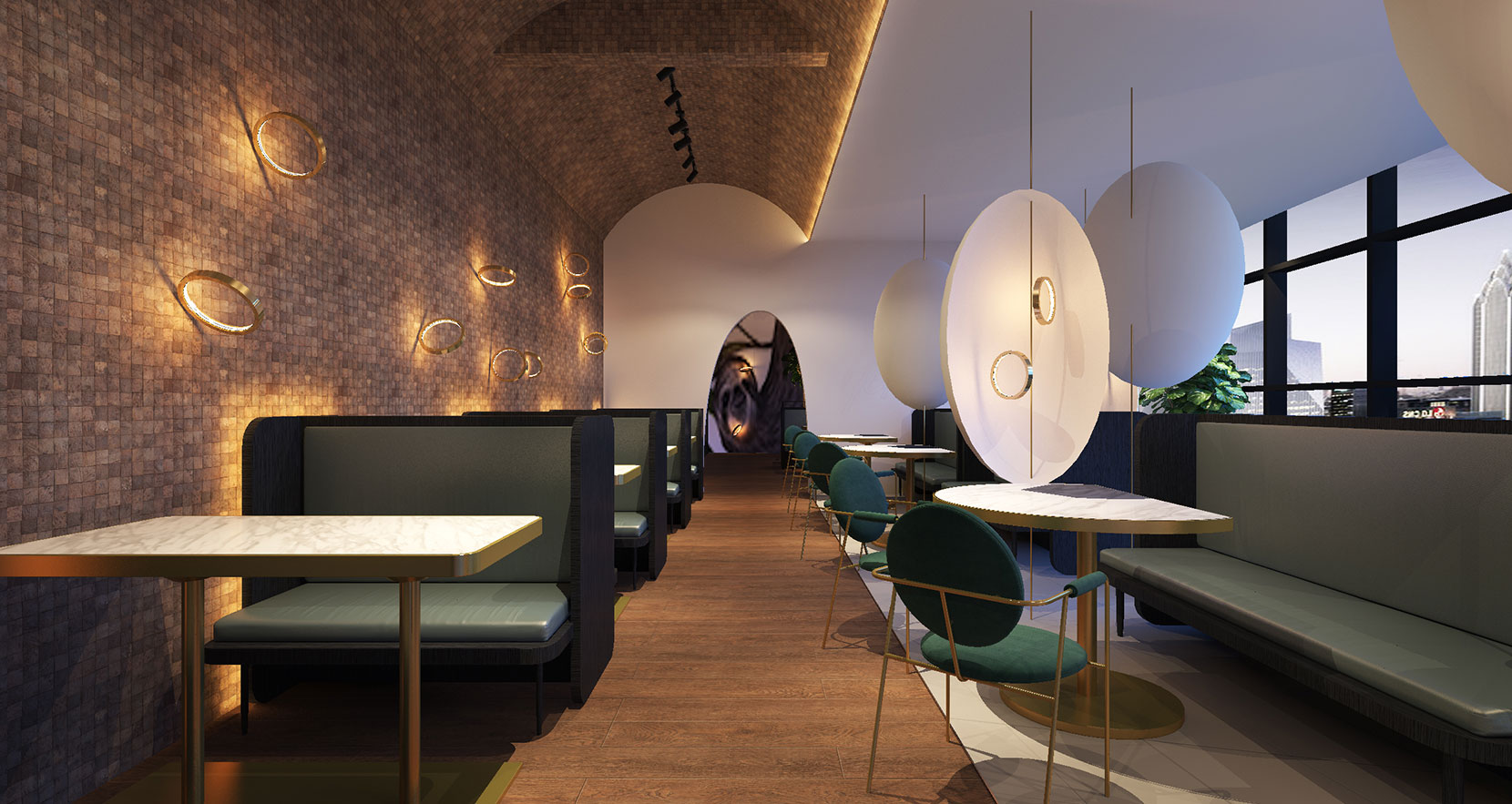 每个区域通过元素的穿插,将大空间相对独立为温柔的小空间,给人被包裹的安全感。以椰壳马赛克等具有真实感的材质,让用餐者更能体味餐厅的真材实料。