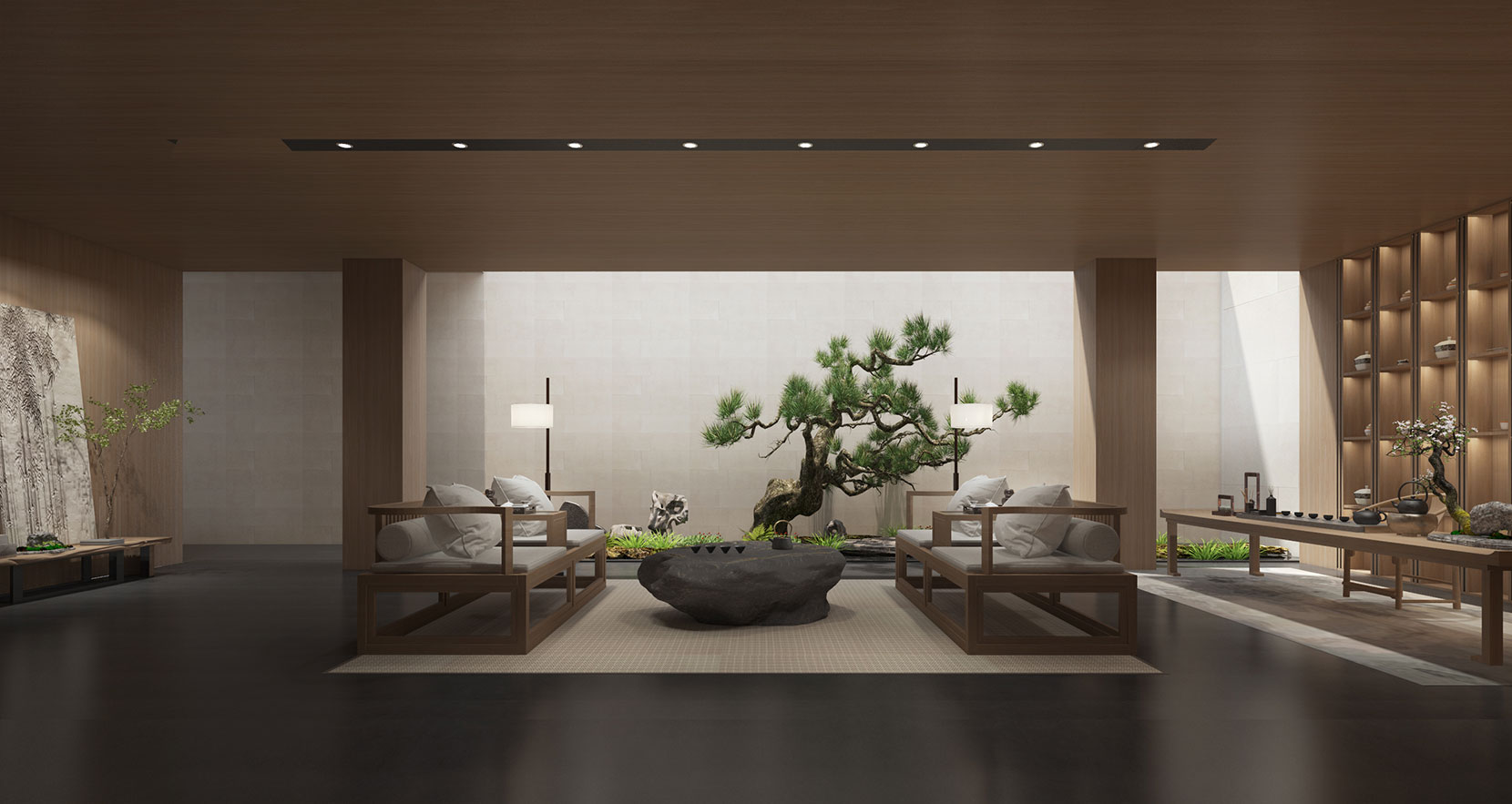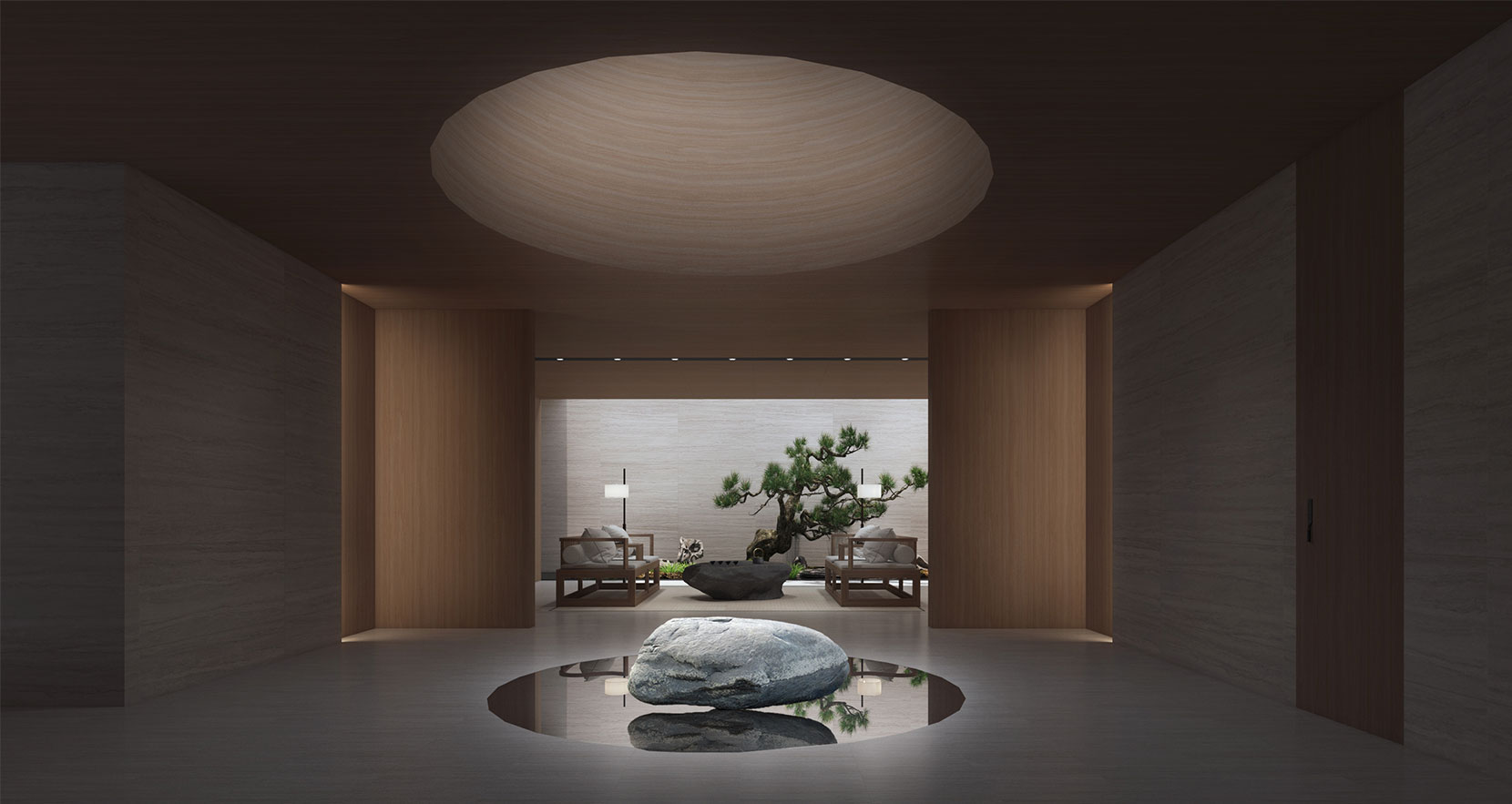 滨水为序,水虽是有形之物,却容纳百川于无形,在硬石与水柔之间,描绘出形与神的深邃意境,留予来访者无限的想象。