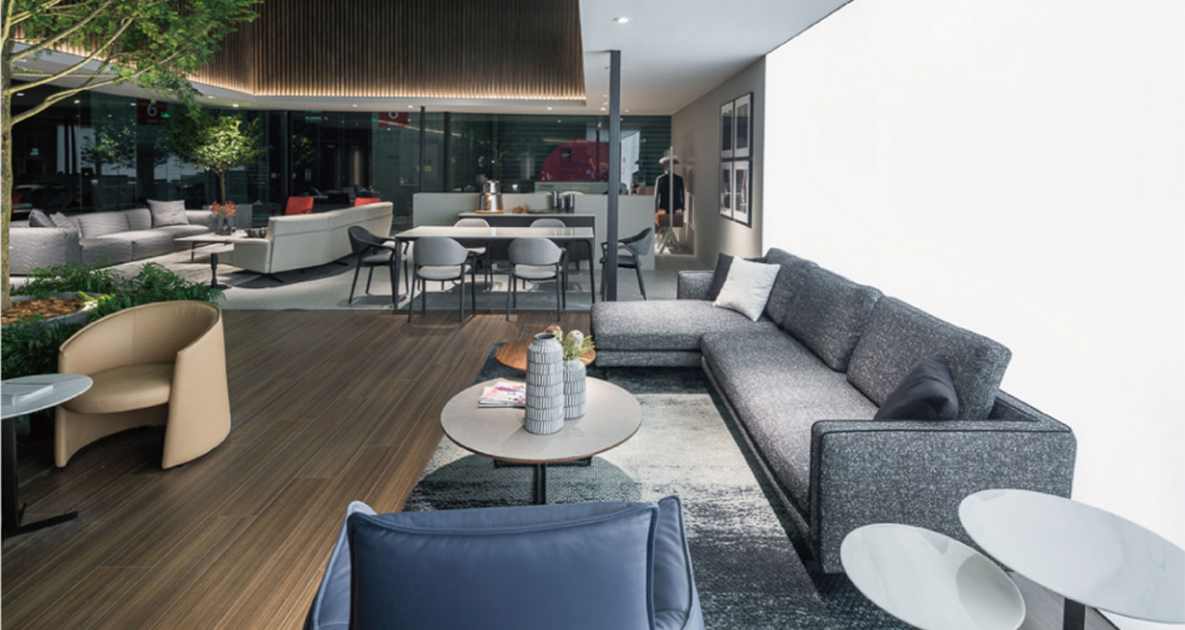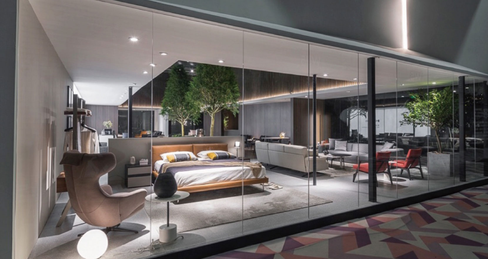 同时为了满足不时更换的产品需求,设计团队在环境布置上,遵从空间布局加法 和设计效果减法的手法来突出家具产品,而因此创造出来情景化的空间也赋予了空间的多变性。