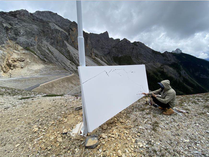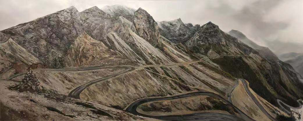八月份我们去了巴拉格宗写景,那里的风景非常的惬意,感觉自己是出去度假了似的。但实际上后来挺辛苦的有高原反应,当时祝总给我们布置了一个任务,现场写景3m x 1m的巨幅作品,在当时的前两天我实际上压力挺大的,因为陈流老师们已经开始画了,而我还在纠结是不是选一个最牛的景,通过两天的努力,找到一个海拔最高而且还在风口上的山顶,那里还经常打雷,朋友们在开玩笑说:我是在渡雷劫,但我感觉这才是最壮美最极致的。最苦的一面是遭遇下暴雨又冷、又是雾霾的,自己就在上面搭了个帐篷,每天都在这样的环境下写景。但这一切都是值得的,远离城市的喧嚣、前所未有的写景体验,在大自然的景就是最优美、是最值得我们去学习和体会的。