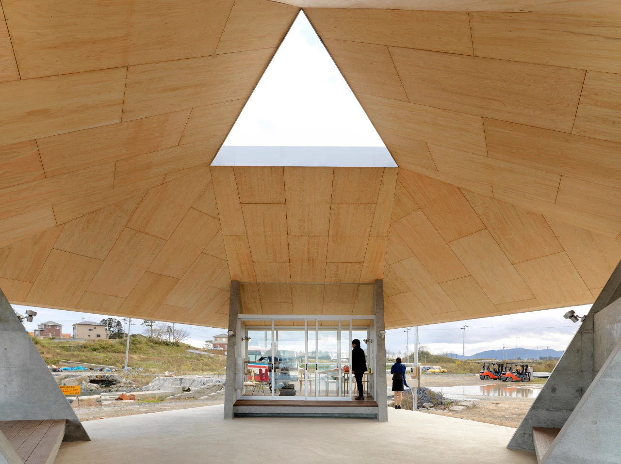 2011 年日本东北的地区遭受地震 和海啸灾害后,很多人在灾害中失去家人和朋友,搬进兵营一样的板房,无法排解悲伤和孤独的情绪,因此“共有之家”选址在安置房聚落附近,这个房子是由“劳力士艺术导师计划”赞助的,因此在方案落地之前需要得到导师妹岛和氏的认可。当时她提出三角形构成的锐角空间太过逼仄,于是我参考她的意见,将三个三角形调整为三个梯形,如此锐角变大,整个屋顶下的空间呈现出一种更为整体且平衡的状态,在这个方案中,利用了拓扑关系的灵活性,房顶的轴线与中间三角形以及外围六边形的关系依然存在。作为一种传统的延续,我遵循着几何形态一定要和拓扑关系形成精确的对位体系,直到最终的建造,几何的交界线也要严格的与拓扑线结合在一起这样的准则。